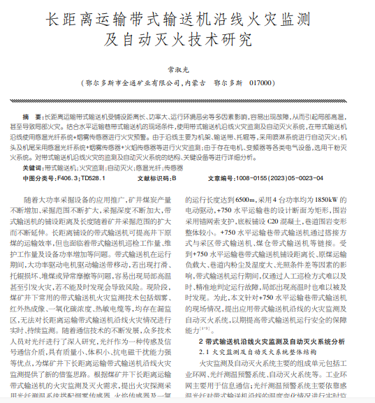 长距离运输带式输送机沿线火灾监测 及自动灭火技术研究