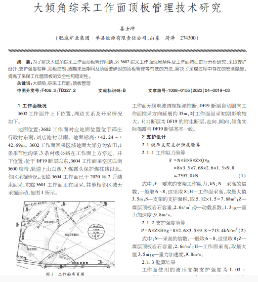 大倾角综采工作面顶板管理技术研究