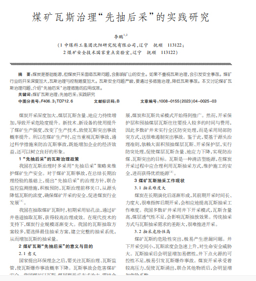 煤矿瓦斯治理“先抽后采”的实践研究