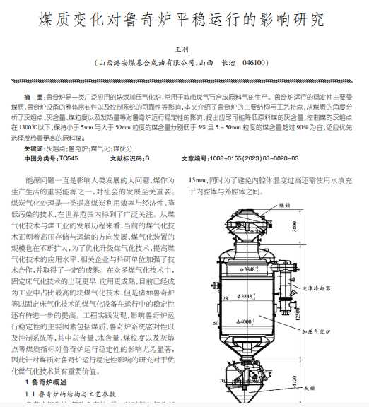 煤质变化对鲁奇炉平稳运行的影响研究