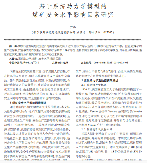 基于系统动力学模型的 煤矿安全水平影响因素研究