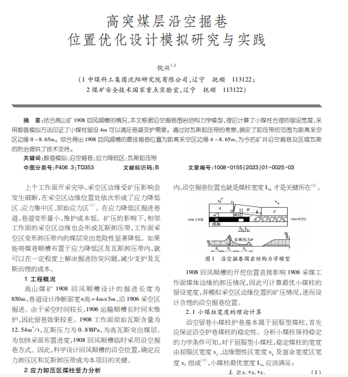高突煤层沿空掘巷 位置优化设计模拟研究与实践