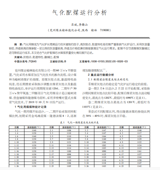 气化配煤运行分析