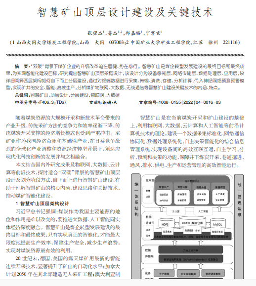 智慧矿山顶层设计建设及关键技术