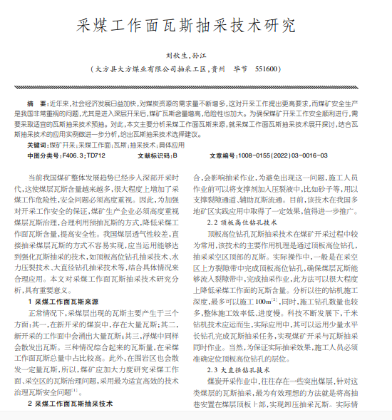 采煤工作面瓦斯抽采技术研究