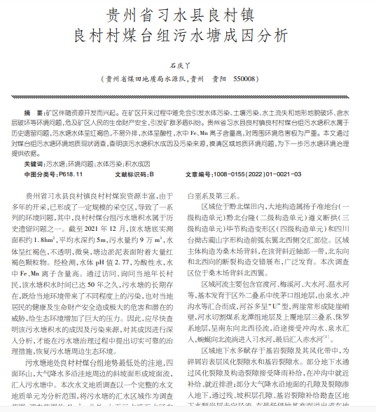 贵州省习水县良村镇 良村村煤台组污水塘成因分析