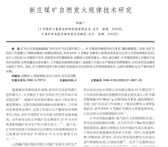 矿井火灾是直接威胁矿井安全生产的主要灾害之一。