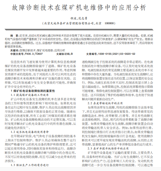 故障诊断技术;煤矿机电维修;应用分析