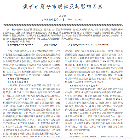 煤矿矿震分布规律及其影响因素