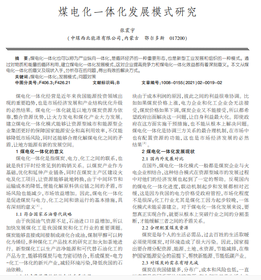 煤电化一体化也可以称为产业纵向一体化,是循环经济的一种重要形态。