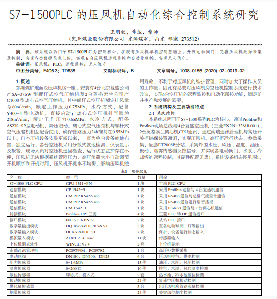 S7-1500PLC 的压风机自动化综合控制系统研究