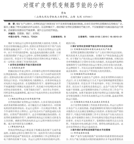 近些年来皮号机变频吞的应用愈加广泛, 基本上覆盖了带式运输机的作业场合,在这种情况下,敬好煤矿皮带机变频吞的节能分析。