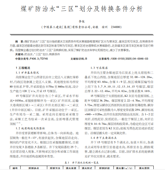 禁采区经治理降低水害威胁后,达到缓采区或可采区标准可进行转 换。