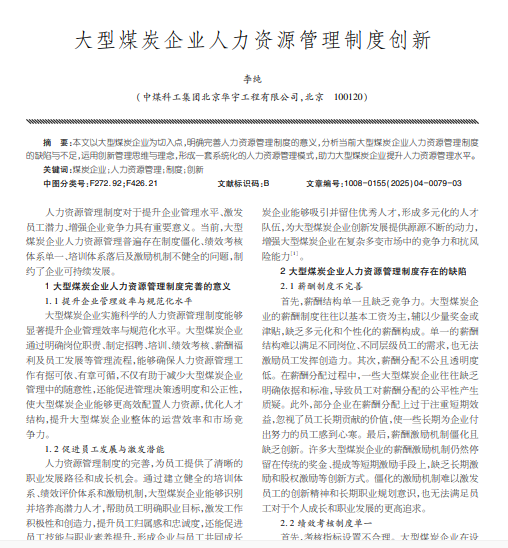 大型煤炭企业人力资源管理制度创新