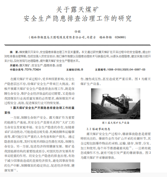 关于露天煤矿 安全生产隐患排查治理工作的研究