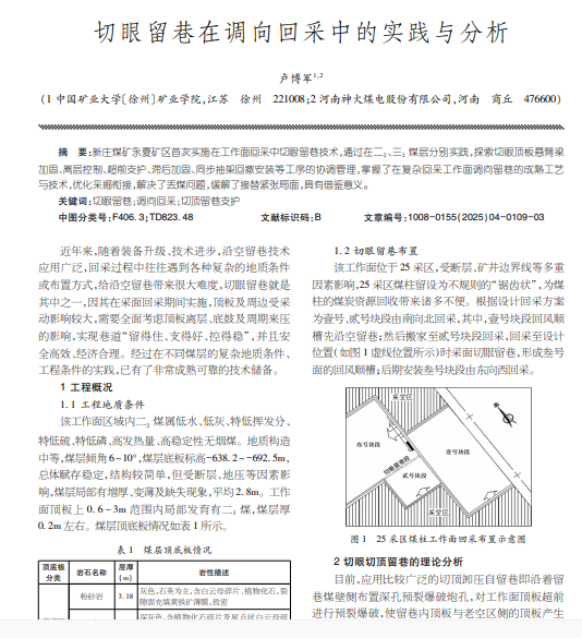 新庄煤矿永夏矿区首次实施在工作面回采中切眼留巷技术。