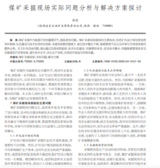 煤矿采掘作为能源开发的重要环节,面临诸多问题。