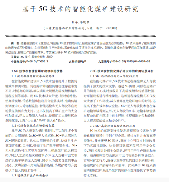 随着信息技术飞速发展,特别是5G技术的商用化,智能化煤矿建设已成为必然趋势。