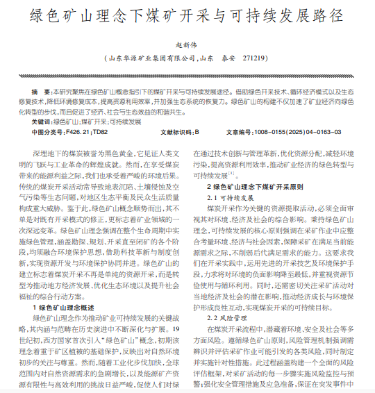 绿色矿山理念下煤矿开采与可持续发展路径