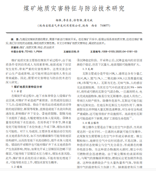 煤矿地质灾害特征与防治技术研究