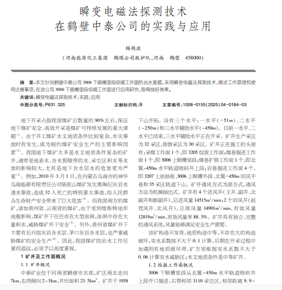瞬变电磁法探测技术 在鹤壁中泰公司的实践与应用