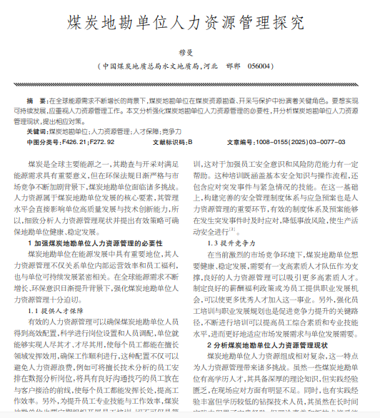 【8】供给侧改革下煤炭行业人力资源管理工作研究