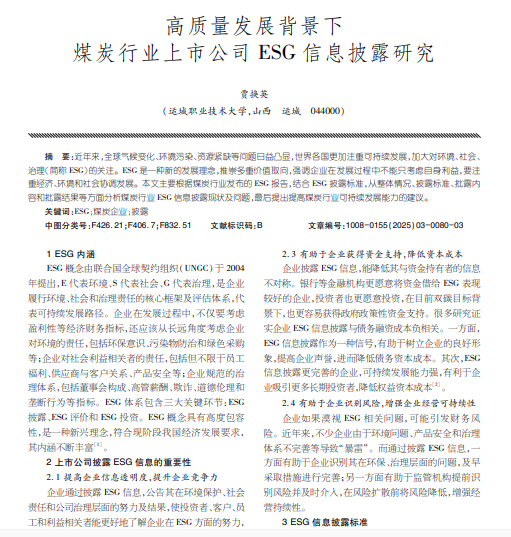高质量发展背景下 煤炭行业上市公司ESG信息披露研究