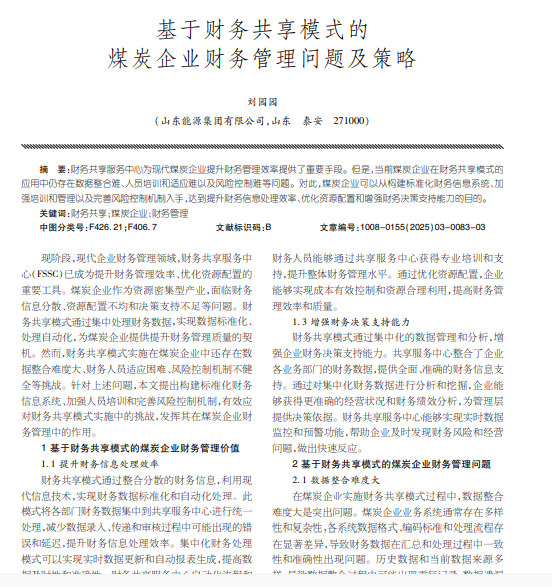 基于财务共享模式的 煤炭企业财务管理问题及策略