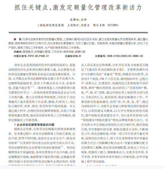 抓住关键点,激发定额量化管理改革新活力