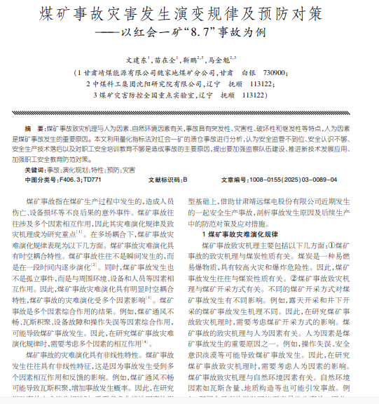 煤矿事故灾害发生演变规律及预防对策——以红会一矿“8.7”事故为例