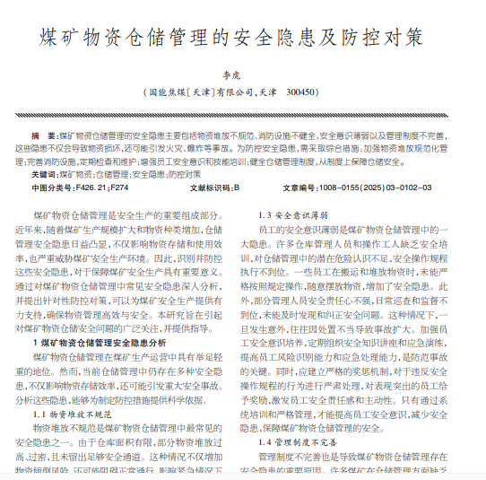 煤矿物资仓储管理的安全隐患及防控对策
