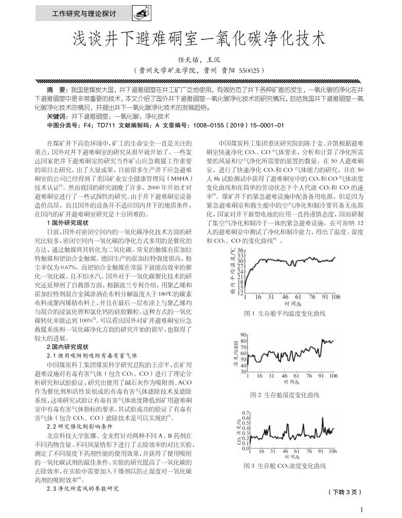 我国是煤炭大国,井下避难初室在井工矿厂泛地使用,有效防范了井下各种矿难的发生,—氧化惊的净化在井下避难硐室中是非常重要的技术,本文介绍了国外井下避难碍室—氧化碳净化技术的研究隅况,总结我国井下避难涓室—氧化恢净化技术的情况,并提出井下—氧化碳净化技术的发展趋势。