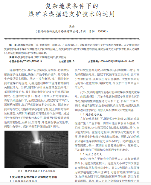 复杂地质条件;煤矿采煤掘进支护;技术应用