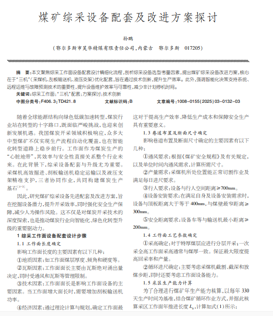 本文聚焦综采工作面设备配套设计精细化流程,剖析综采设备选型考量因素。
