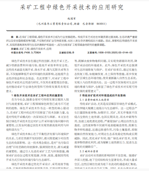 在采矿工程领域,绿色开采技术已成为行业发展趋势。