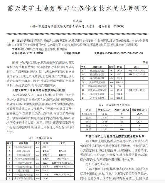 露天煤矿土地复垦与生态修复技术的思考研究