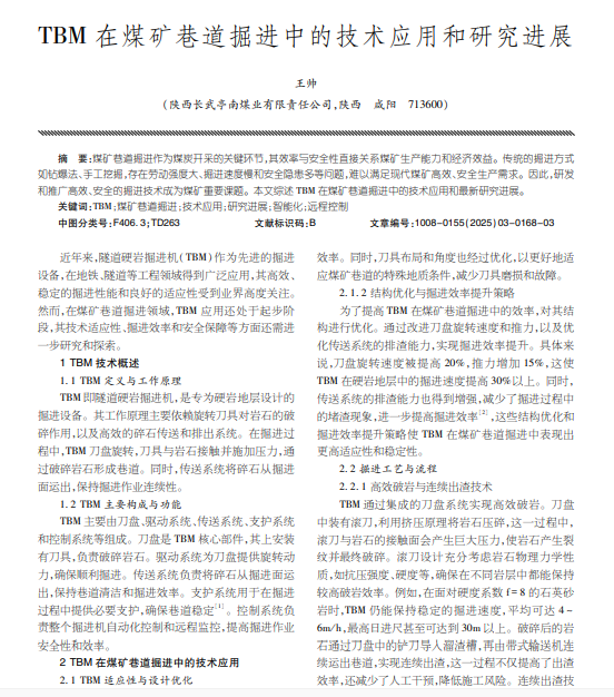TBM在煤矿巷道掘进中的技术应用和研究进展