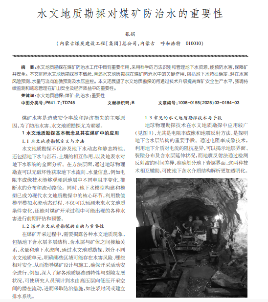 水文地质勘探在煤矿防治水工作中具有重要作用,采用科学的方法识别和管理地下水资源。