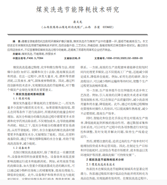随着全球能源危机加剧和环境保护意识增强,煤炭洗选作为煤炭产业中的重要一环,面临节能减排压力。