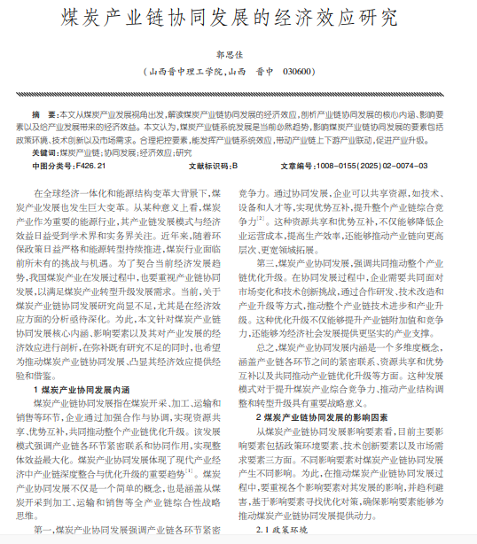 本文从煤炭产业发展视角出发,解读煤炭产业链协同发展的经济效应。