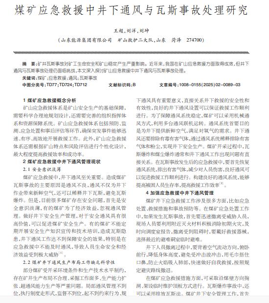 煤矿;应急救援;通风