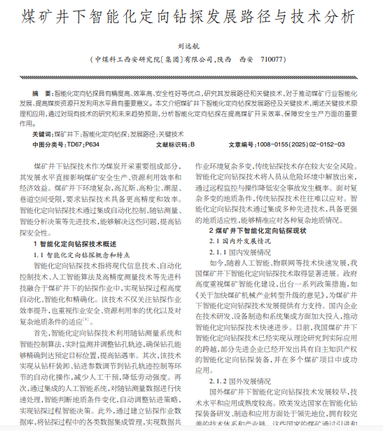 煤矿井下智能化定向钻探发展路径与技术分析