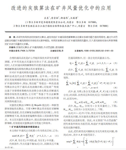 本研究利用改进的灰狼优化算法,避免传统矿井通风网络解算算法在解决多峰问题方面的局限性。