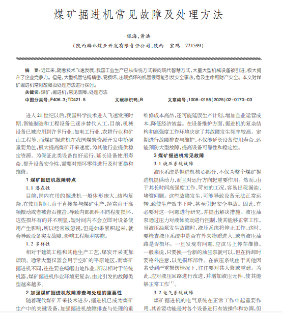 煤矿掘进机常见故障及处理方法