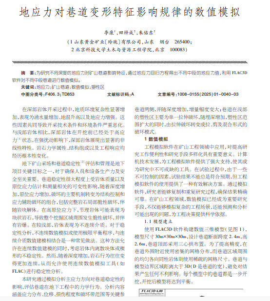 为研究不同深度的地应力对矿山巷道影响特征,通过地应力回归方程得出不同中段的地应力值,利用h_HM,D 软件对不同中段巷道进行数值模拟。