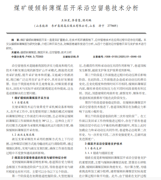 缓倾斜薄煤层;煤层开采;沿空留巷