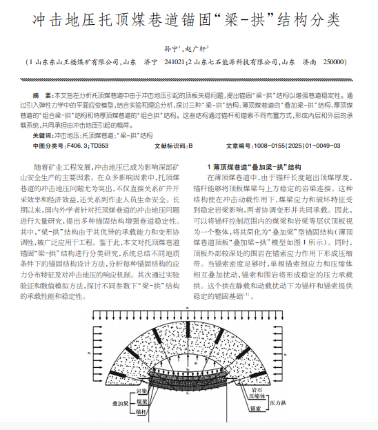 冲击地压托顶煤巷道锚固“梁-拱”结构分类