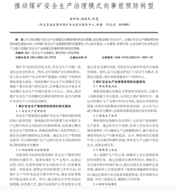 本文探讨煤矿安全生产治理模式向事前预防转型的策略,旨在推动煤矿安全生产。