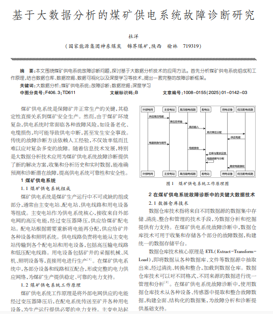 本文围绕煤矿供电系统故障诊断问题,探讨基于大数据分析技术的应用方法。