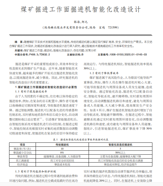 随着煤矿开采技术发展和智能水平提高,传统的掘进机难以满足现代煤矿高效,安全,环保的生产需求。